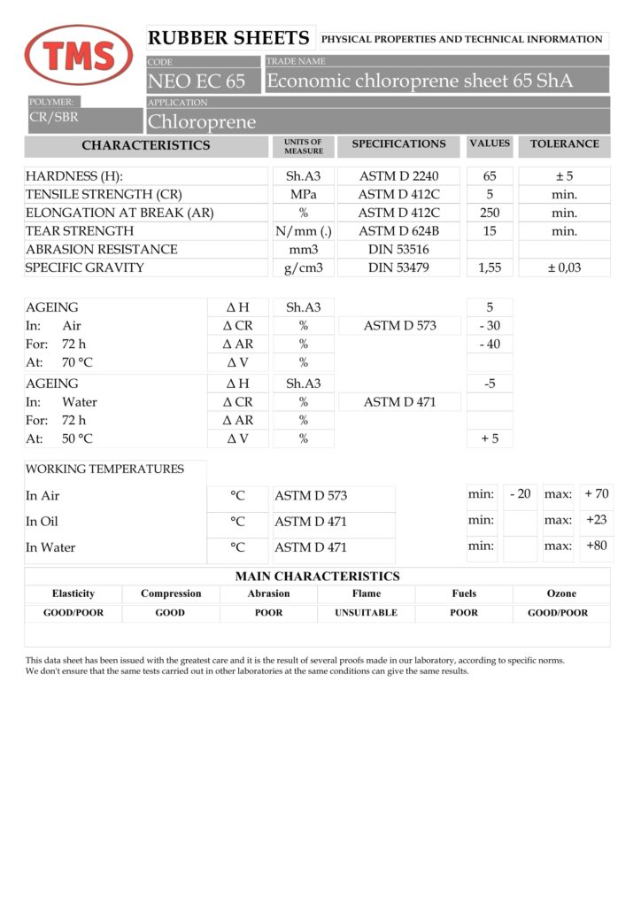 / mNeoprēna gumija ir sintētisks materiāls, kam raksturīga augsta mehāniskā izturība, tas ir laikapstākļu izturīgs, izturīgs pret ķīmiskām vielām un daļēji izturīgs pret naftas produktiem.